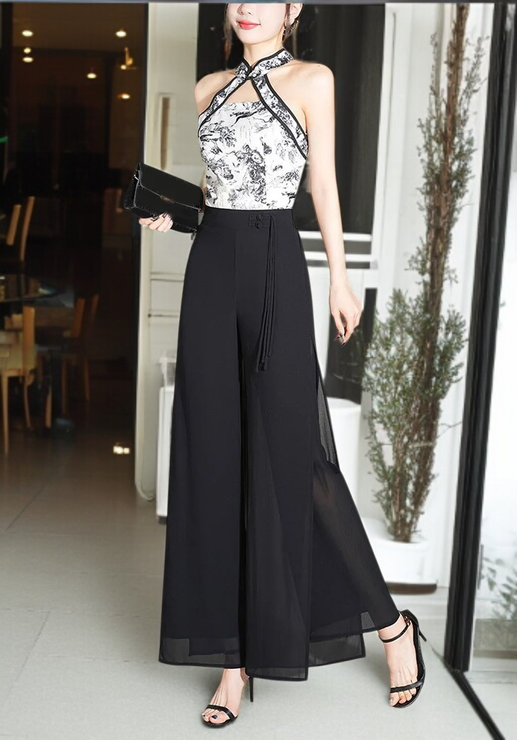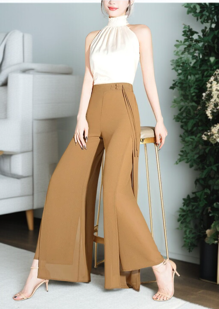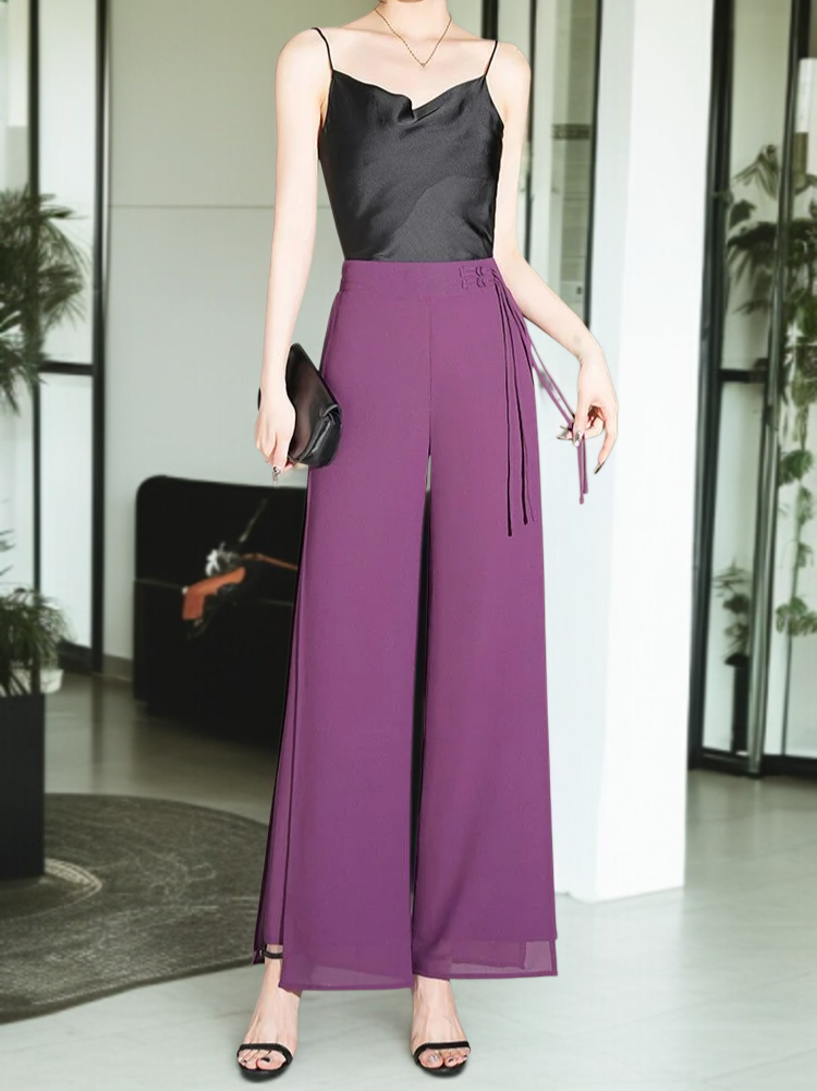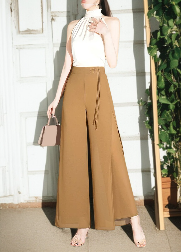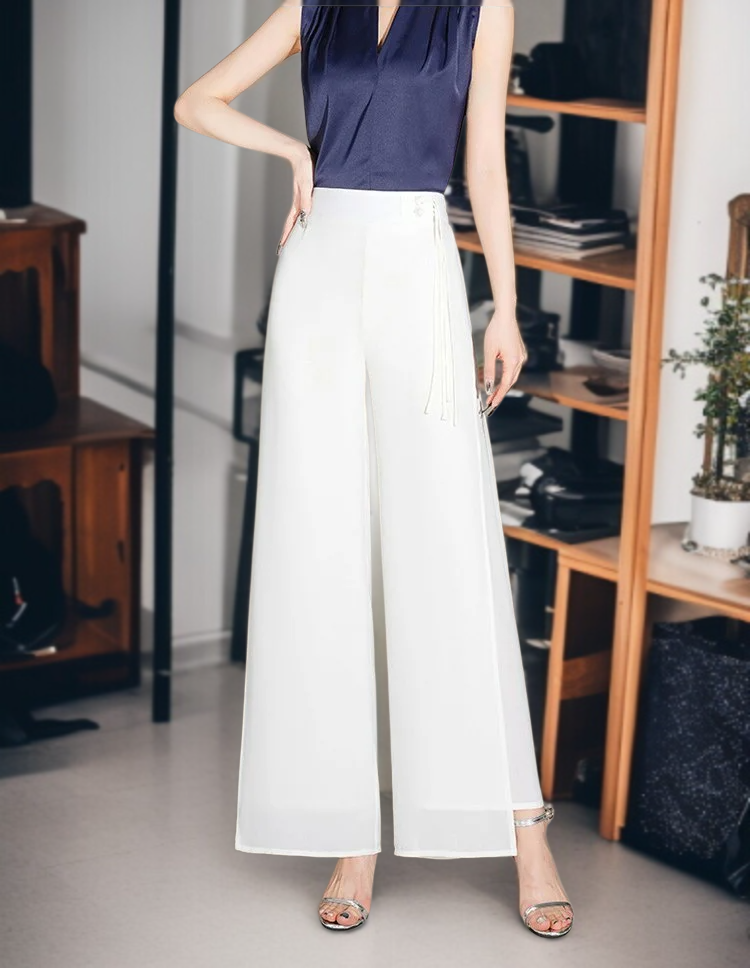 여성 와이드 얇은 밴딩 허리 와이드 팬츠 9부 처짐 절개 와이드 팬츠 바람 쉬폰 일자 와이드 팬츠 하늘하늘 치마바지